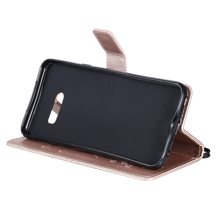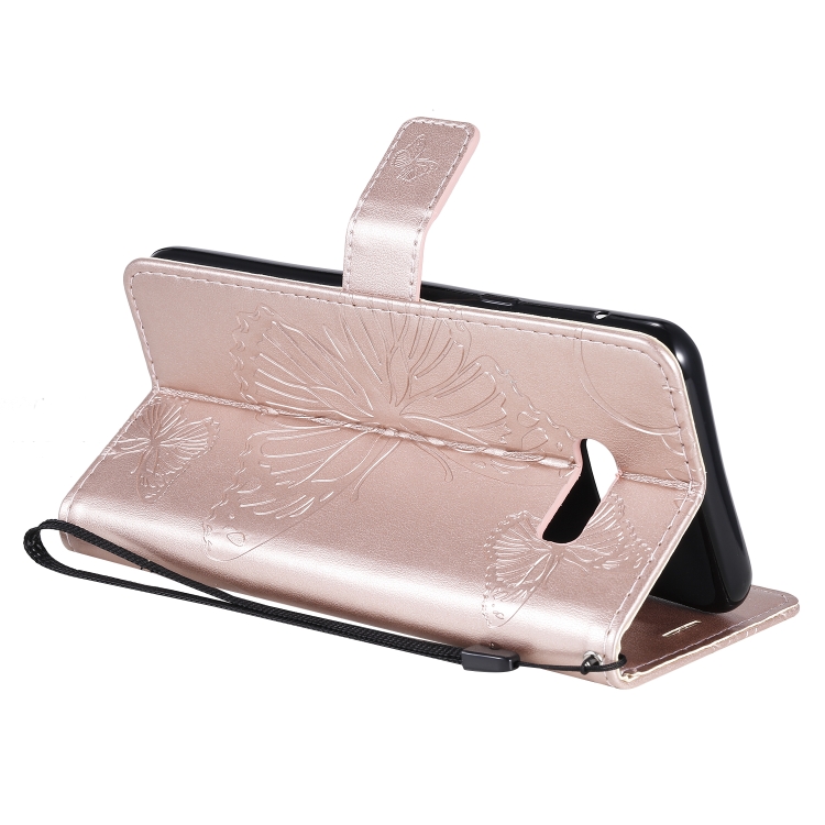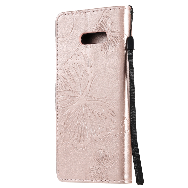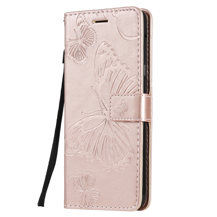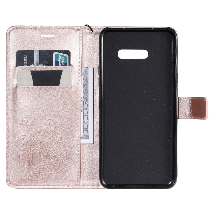 Funda Cuero PU para LG G8X con Patrón Mariposa, Tapa Horizontal, Soporte, Ranuras y Cordón (Oro Rosa)