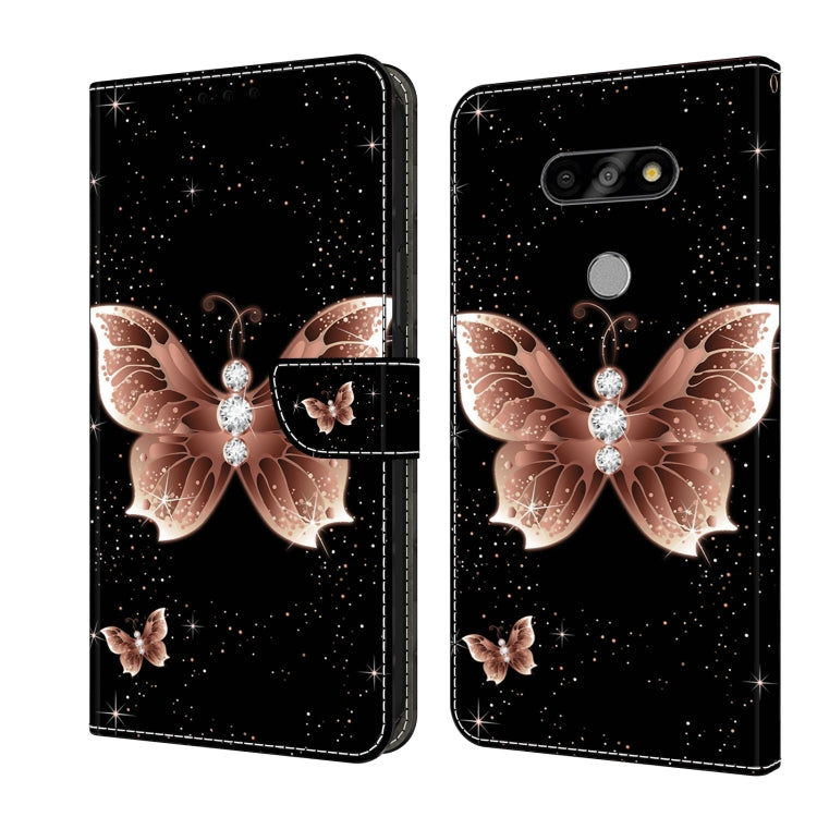 Funda Protectora de Cuero para LG K31 Crystal 3D a Prueba de Golpes (Mariposa de Diamante Rosa)