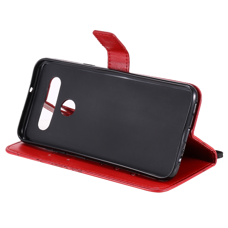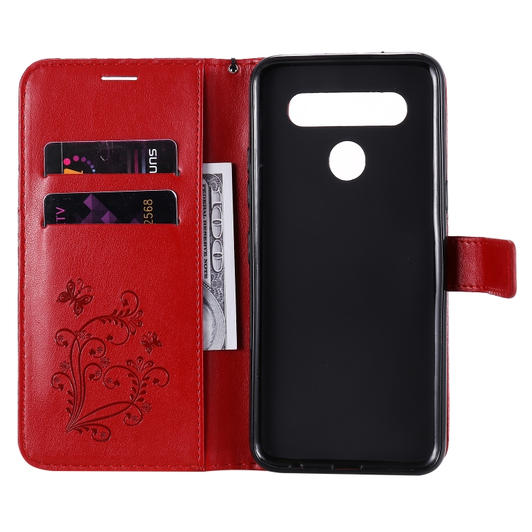 Funda de Cuero para LG K41S y K51S con Soporte, Ranura para Tarjeta, Billetera y Cordón (Rojo)