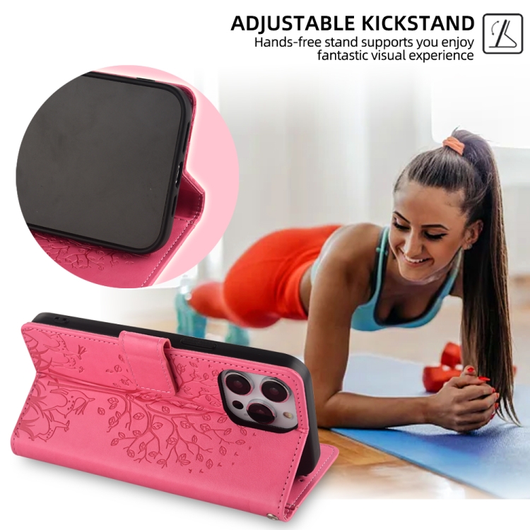 Funda de Cuero para LG K42 con Relieve de Árbol y Ciervo (Rosa)