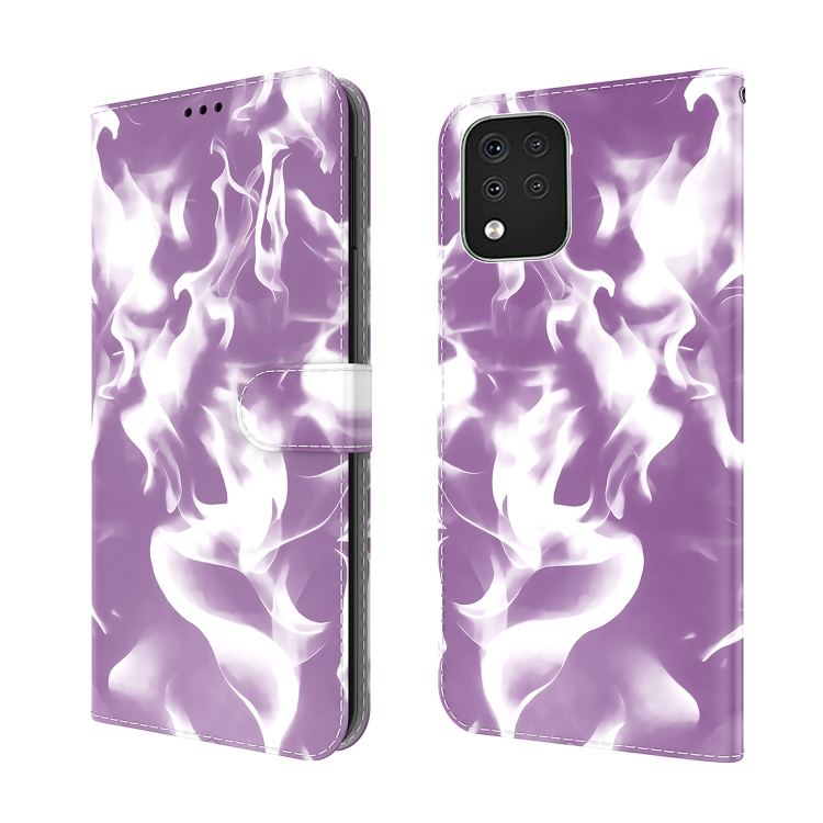 Funda de Cuero para LG K42 Nube Fog Pattel Horizontal Flip con Soporte y Ranura para Tarjeta y Billetera (Púrpura)