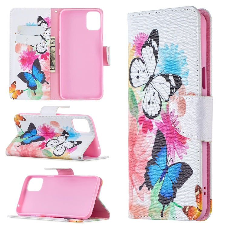 Funda de Cuero para LG K42 con Patrón Horizontal, Soporte, Ranuras para Tarjeta y Billetera (Mariposa)