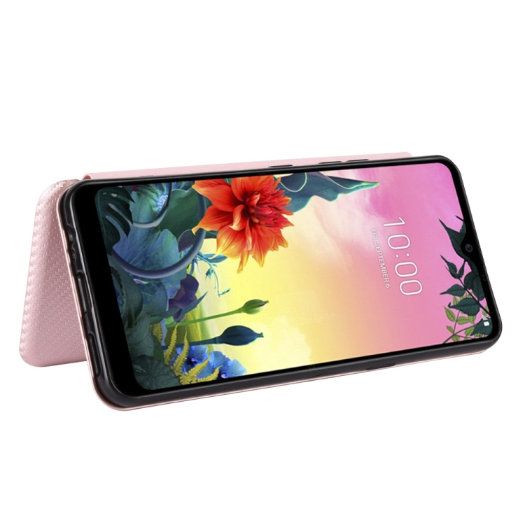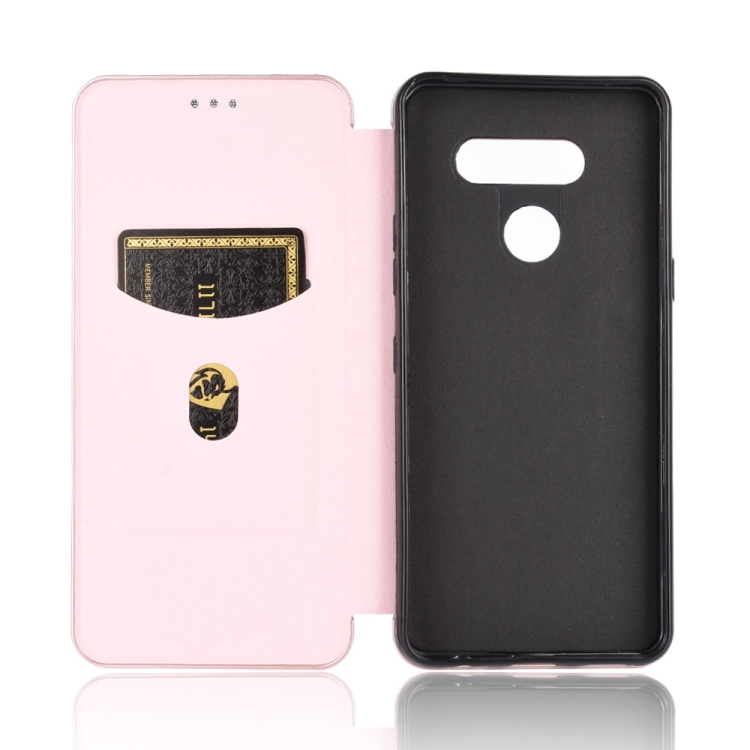 Funda de Cuero LG K50S con Tapa Magnética Horizontal Textura Fibra de Carbono TPU + PC + PU con Ranura para Tarjeta (Rosa)