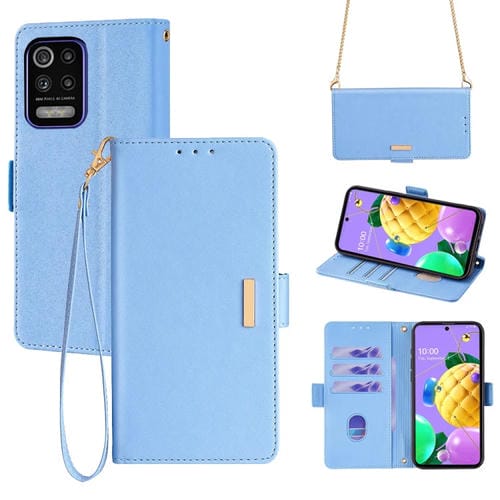 Funda de Cuero con Cadena Cruzada para LG K52 Teléfono (Azul)