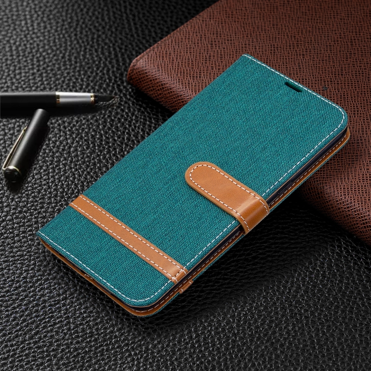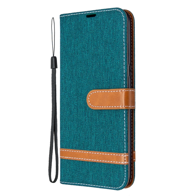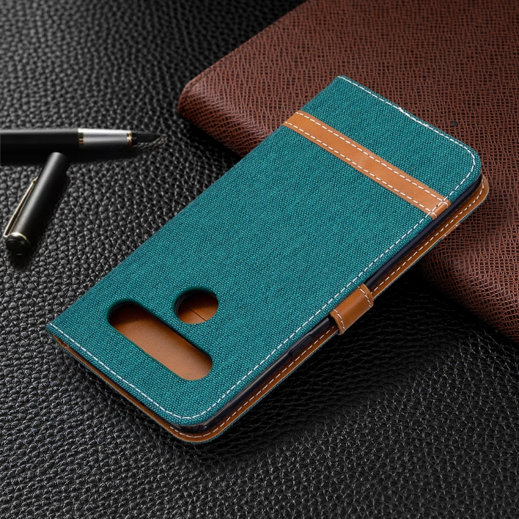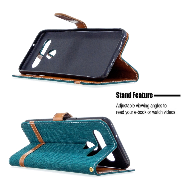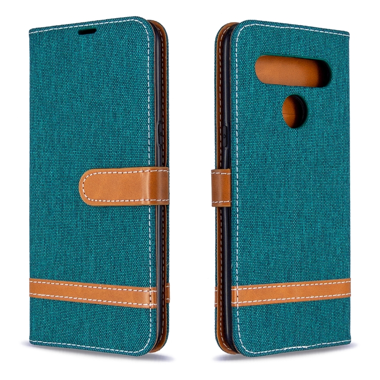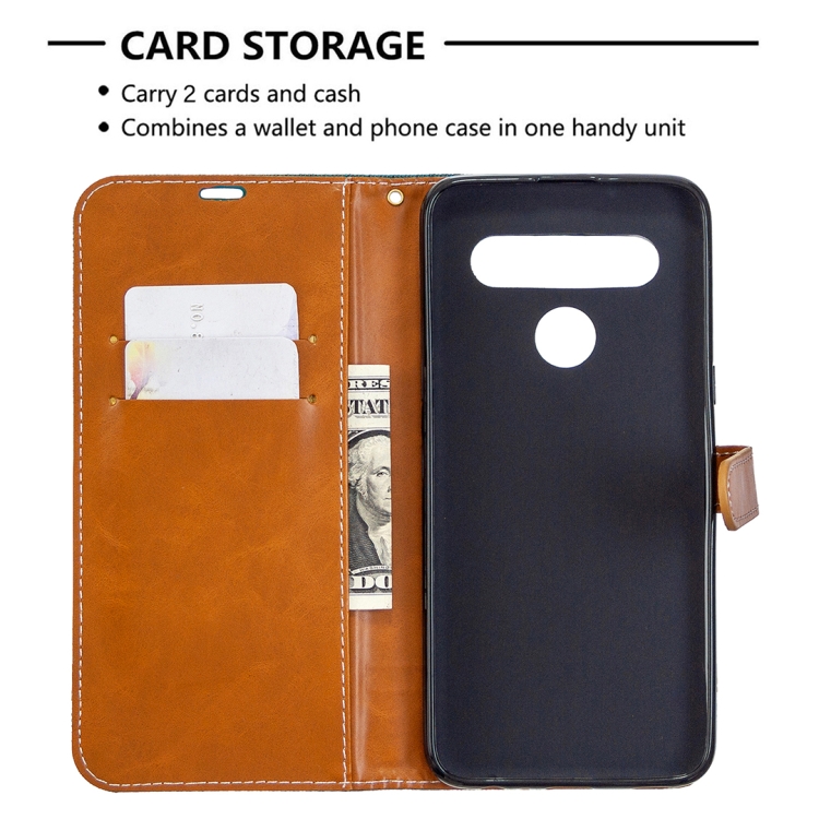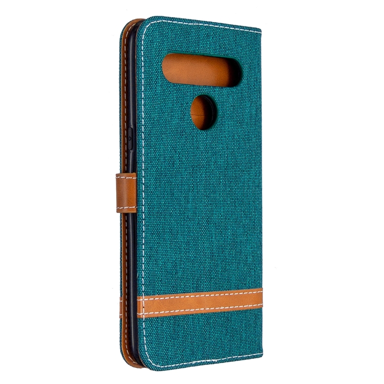 Funda de Cuero para LG K61 Denim Texture con Tapa Horizontal, Soporte, Ranuras para Tarjetas y Cordón (Verde)