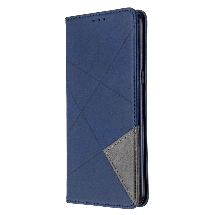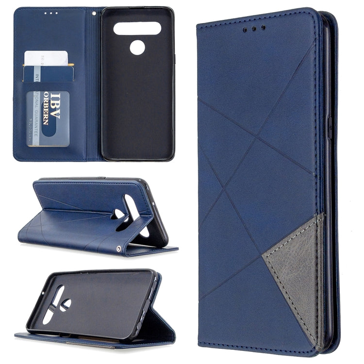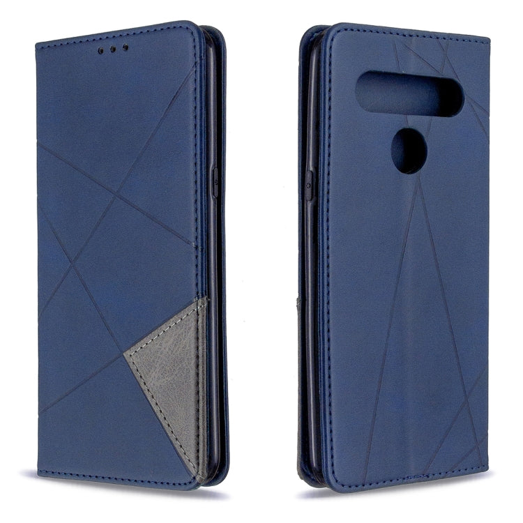 Estuche de Cuero Magnético para LG K61 con Tapa Horizontal, Textura de Rombo, Soporte y Ranuras para Tarjetas (Azul)