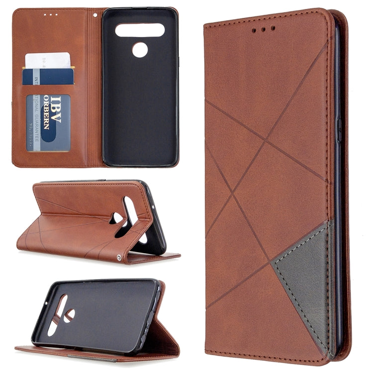 Estuche de Cuero Magnético para LG K61 con Tapa Horizontal, Soporte, Ranuras para Tarjetas y Billetera (Marrón)
