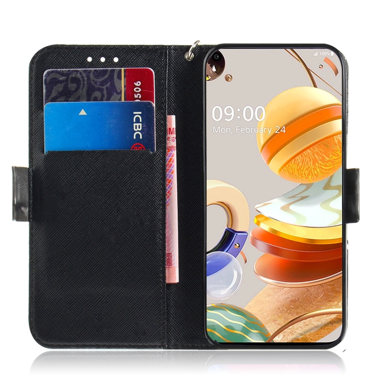 Funda de Cuero Abatible Horizontal para LG K61 con Dibujo 3D, Soporte, Ranuras para Tarjetas y Cordón (Oso Enojado)