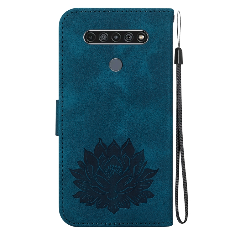 Funda de Cuero para LG K61 con Relieve de Loto (Azul Oscuro)