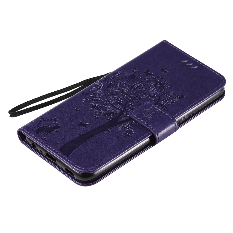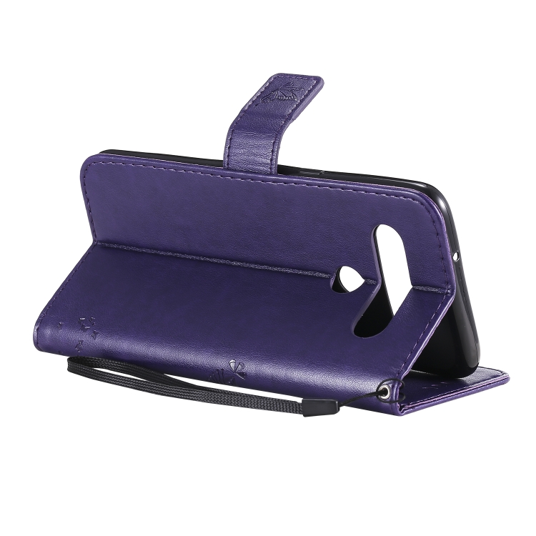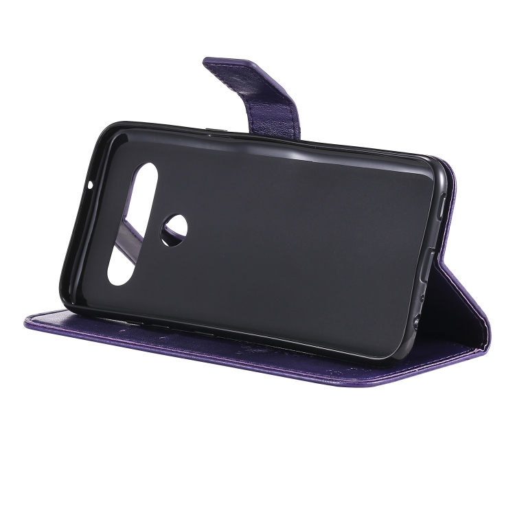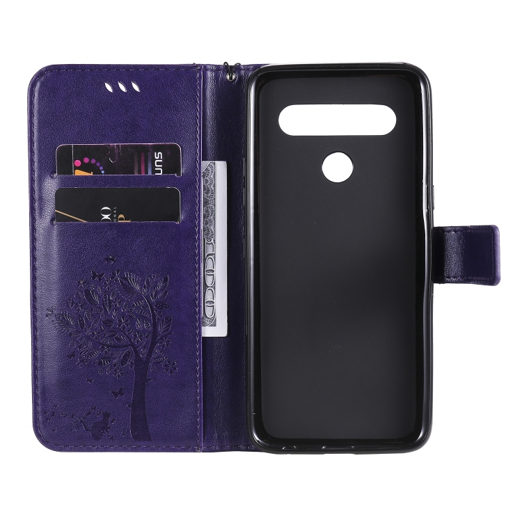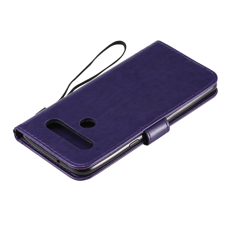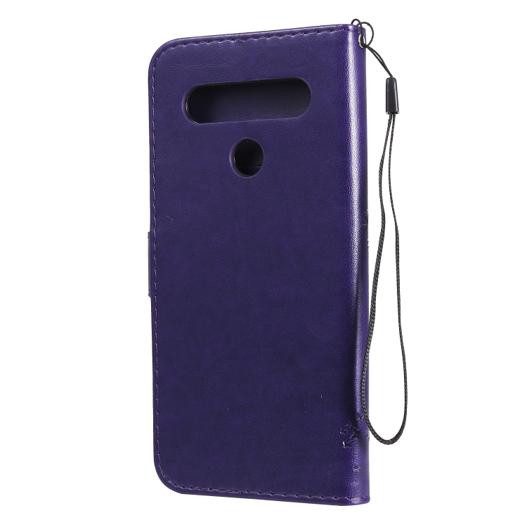 Funda de Cuero LG K61 con Tapa Horizontal, Soporte, Ranuras para Tarjetas, Billetera y Cordón (Púrpura)