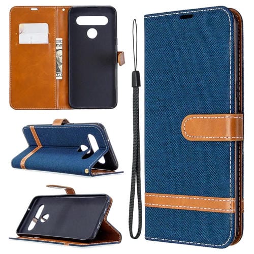 Funda de Cuero para LG K61 con Tapa Horizontal, Textura Mezclilla, Soporte, Ranuras y Cordón (Azul Marino)