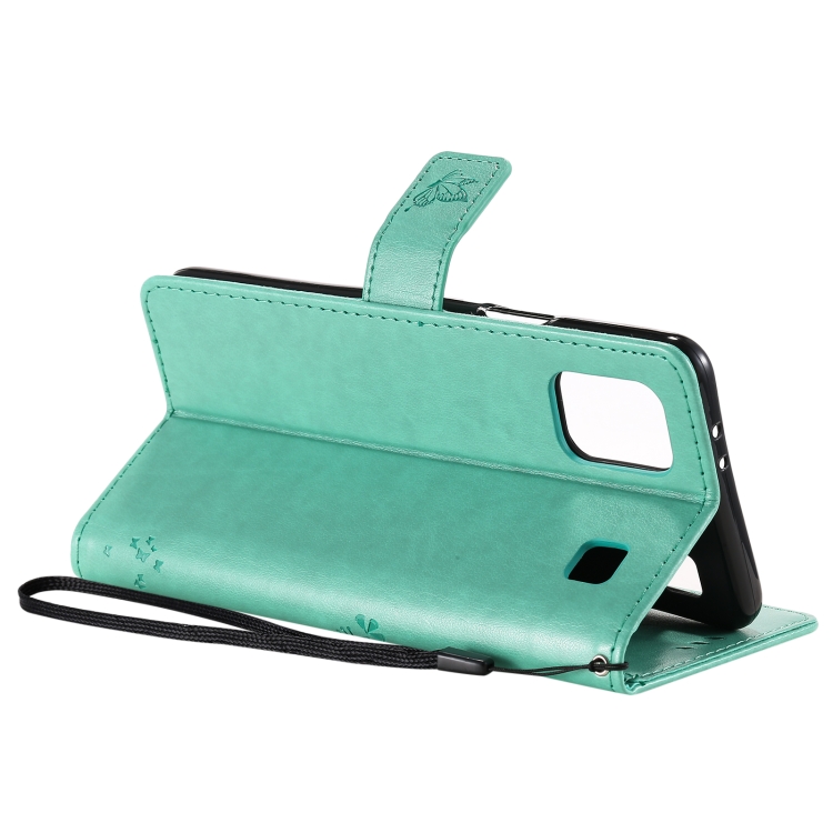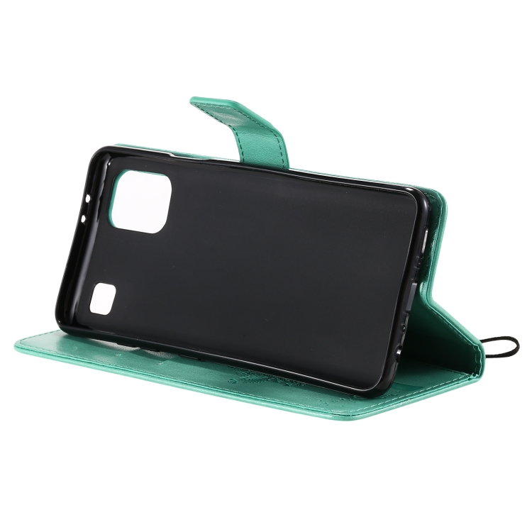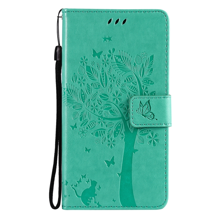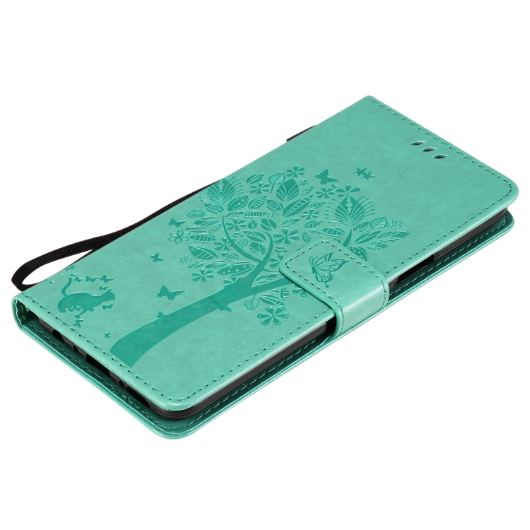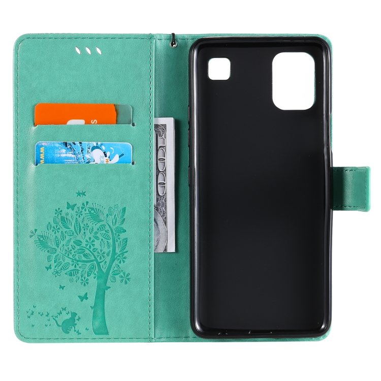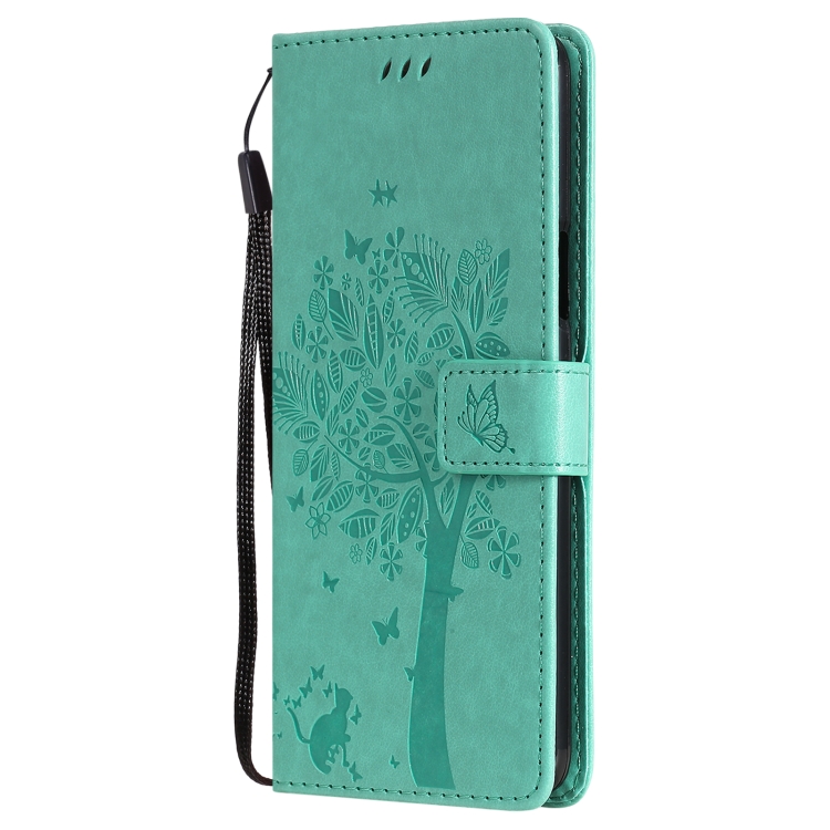 Funda Cuero PU LG K92 5G Árbol y Gato con Soporte, Ranuras y Cordón (Verde)