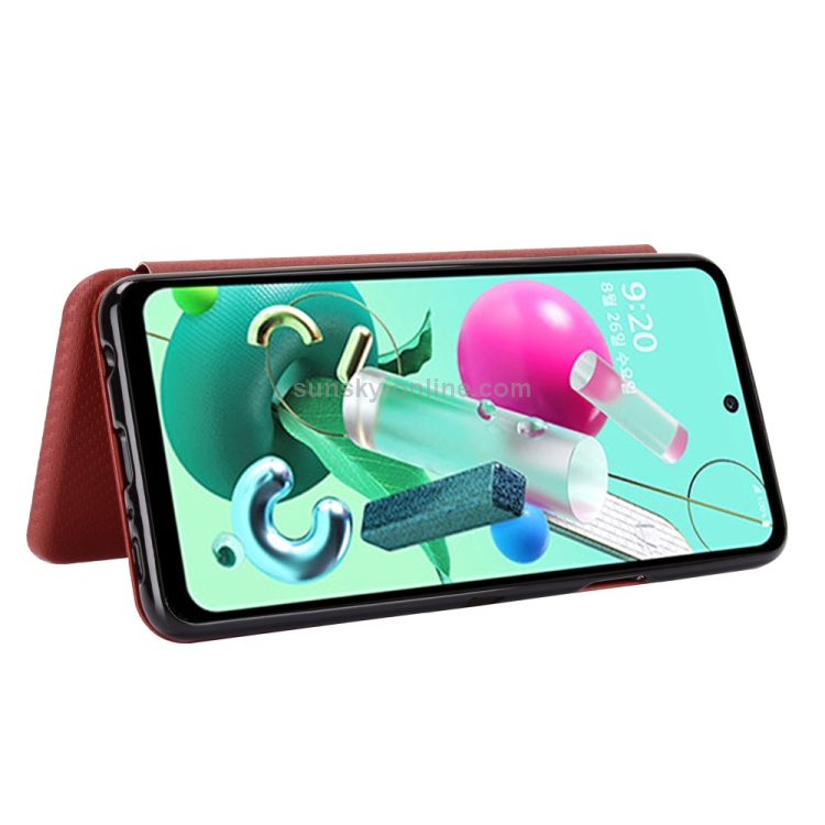 Funda de Cuero LG Q92 5G con Tapa Magnética Horizontal y Ranura para Tarjeta (Marrón)