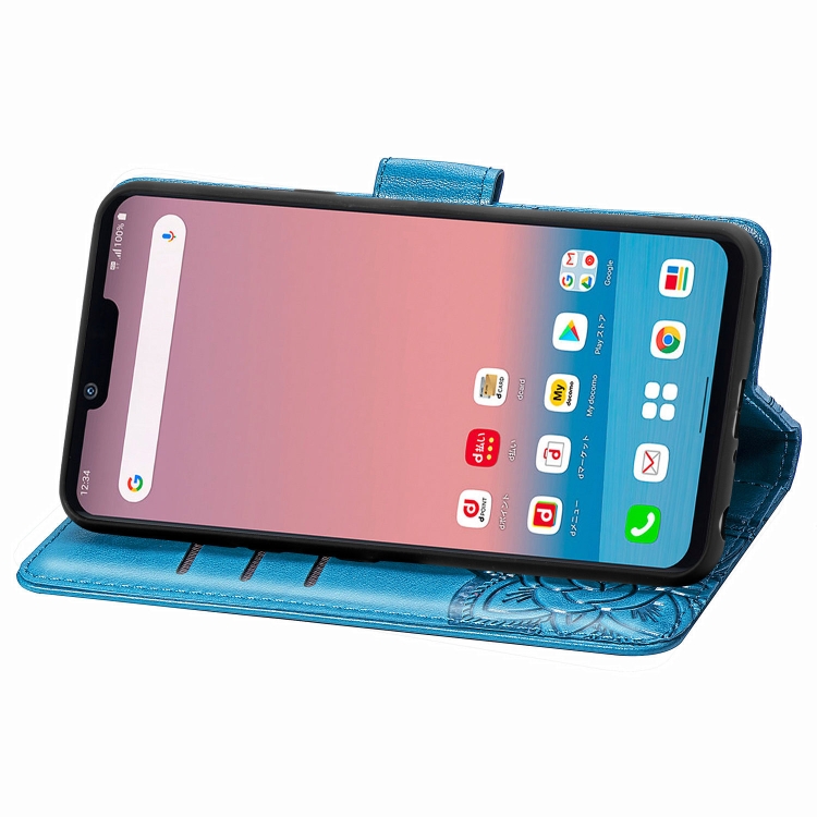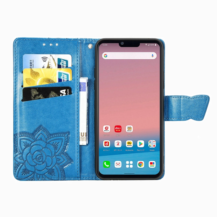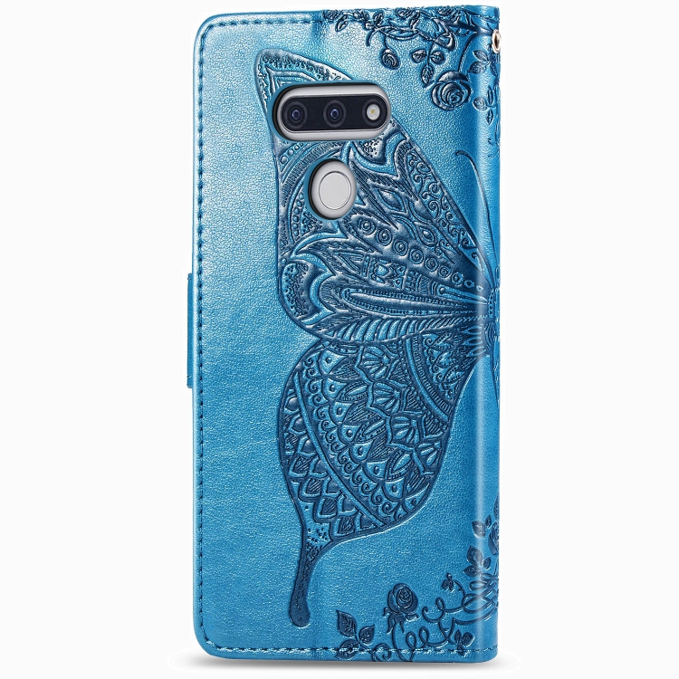 Funda de Cuero LG Style3 L-41A Butterfly Love Flower con Tapa Horizontal, Soporte, Ranura para Tarjeta y Cordón (Azul)