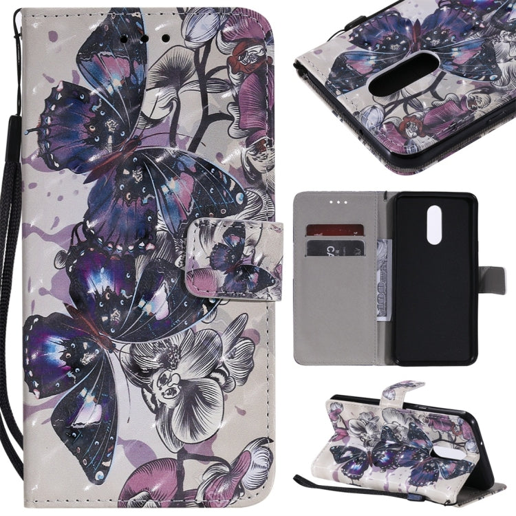 Funda de Cuero para LG Stylo 5 con Tapa Horizontal, Patrón 3D, Billetera, Soporte y Cordón (Mariposa Negra)