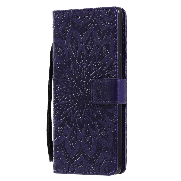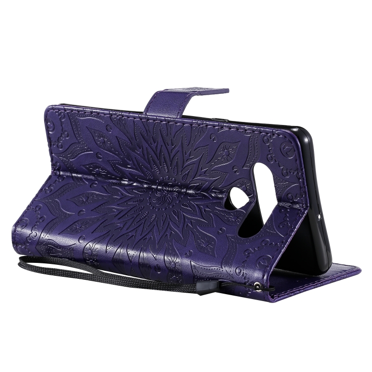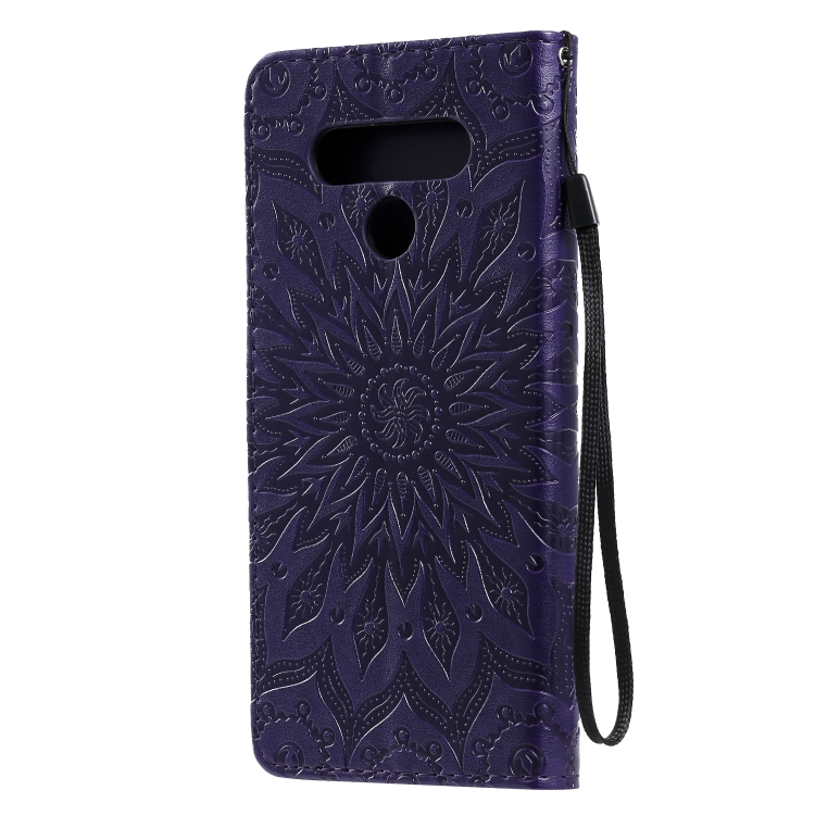 Funda Cuero PU LG Stylo 6 con Patrón Girasol, Tapa Horizontal, Soporte, Ranuras y Cordón (Púrpura)