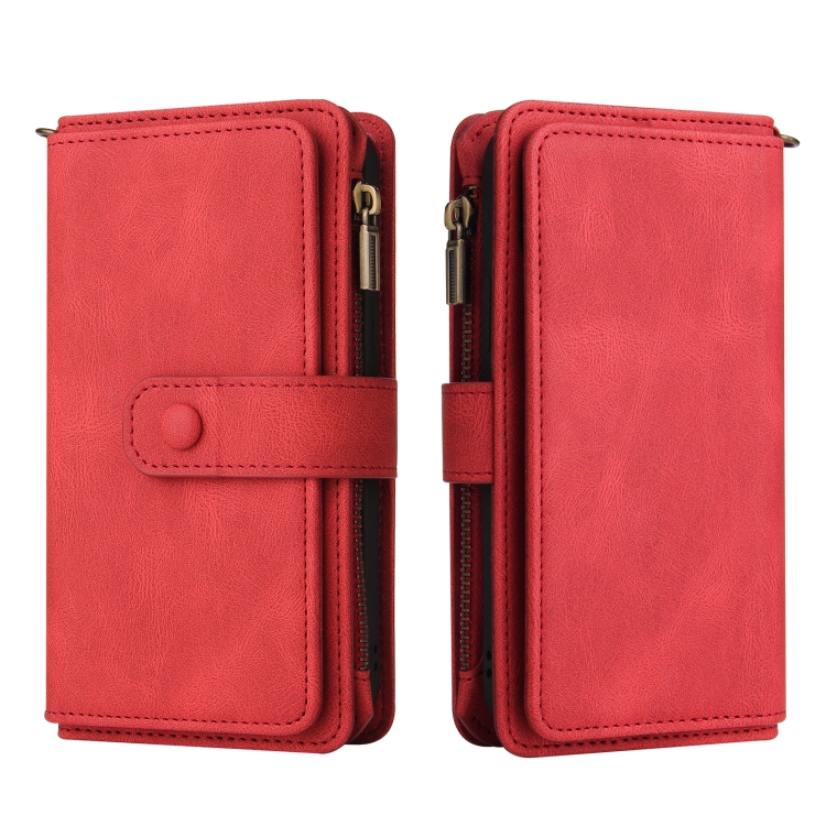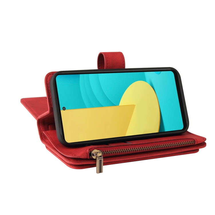Funda Cuero PU + TPU para LG Stylo 7 / Stylo 7 5G con Titular, 15 Tarjetas, Wallet y Lanyard (Rojo)