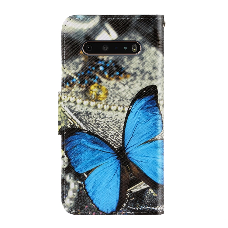 Estuche de Cuero Abatible Horizontal para LG V60 con Dibujo Coloreado, Soporte, Ranura para Tarjeta y Billetera (Una Mariposa)