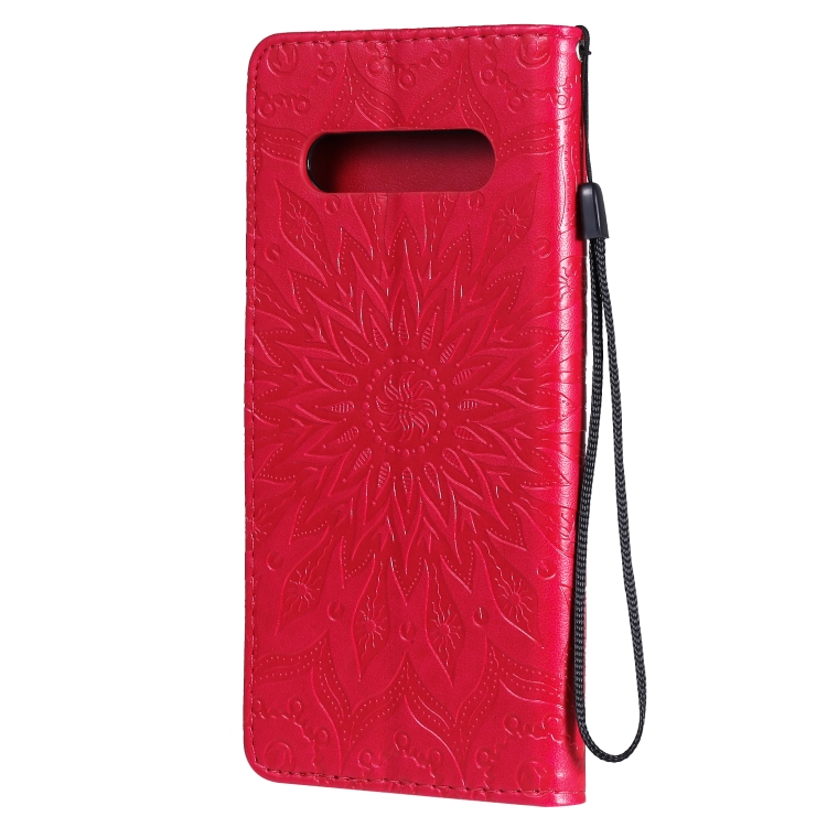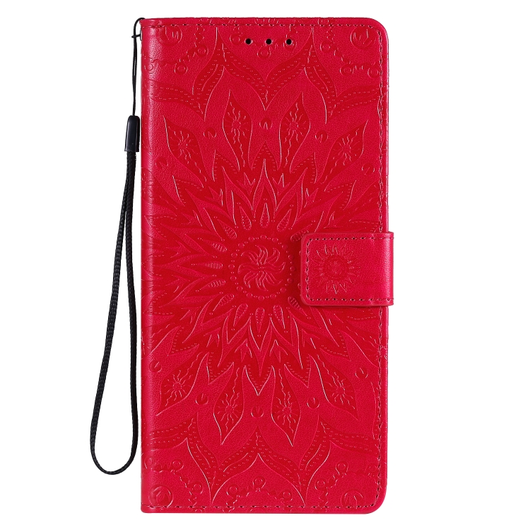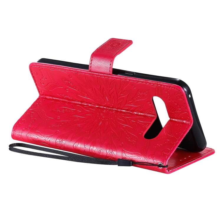 Funda Cuero Pu LG V60 Thinq 5G con Diseño Girasol, Soporte, Ranuras y Cordón (Rojo)