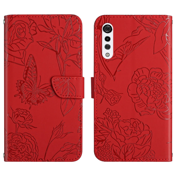 Funda de Cuero en Relieve para LG Velvet 2 Pro con Diseño de Peonía y Mariposa (Rojo)
