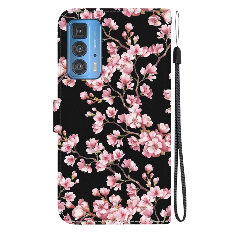 Funda de Cuero para Motorola Edge 20 Pro con Dibujo Coloreado y Textura de Cristal (Flor de Ciruelo)