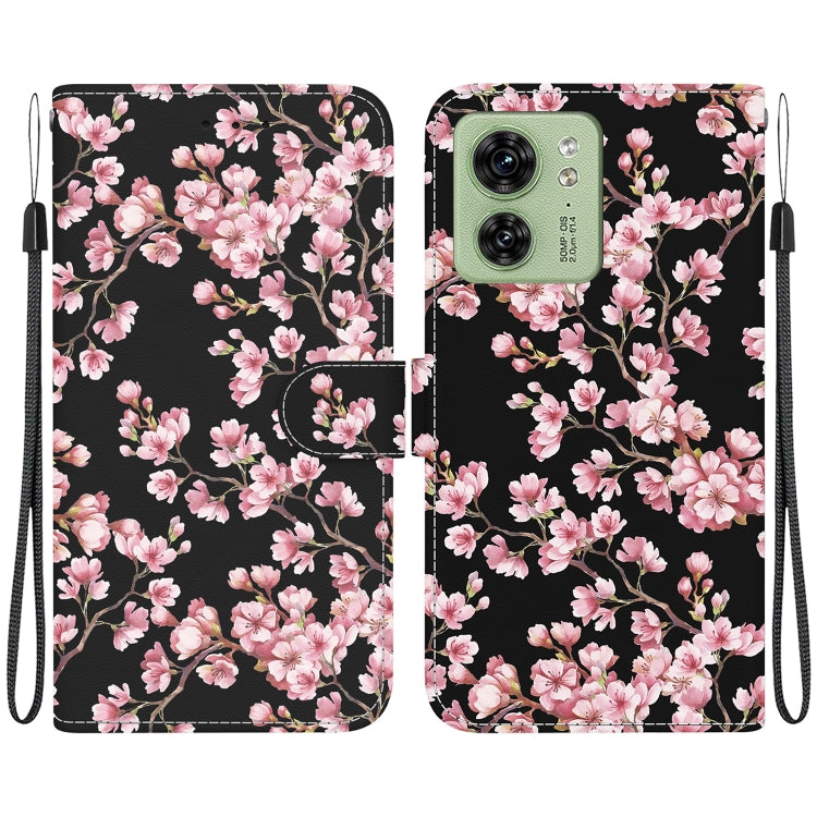 Funda de Cuero para Motorola Edge 40 con Dibujo Coloreado y Textura de Cristal (Flor de Ciruelo)