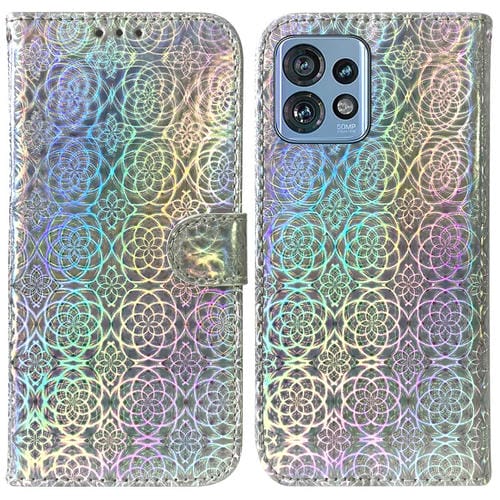Caja de Teléfono de Cuero para Motorola Edge 40 Pro con Hebilla Magnética (Plata)