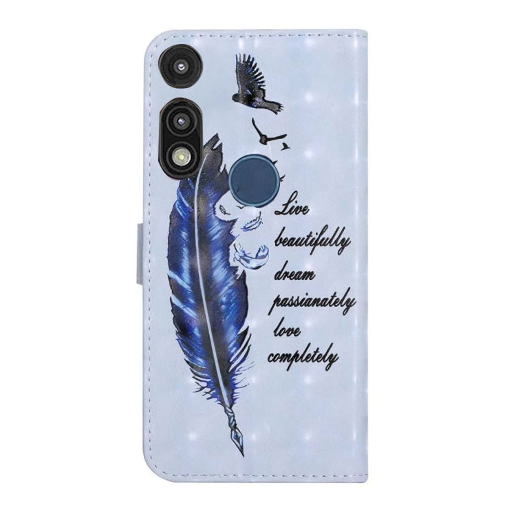 Funda de Cuero para Motorola Moto E 2020 con Dibujo 3D en Relieve al Óleo (Pluma Azul)