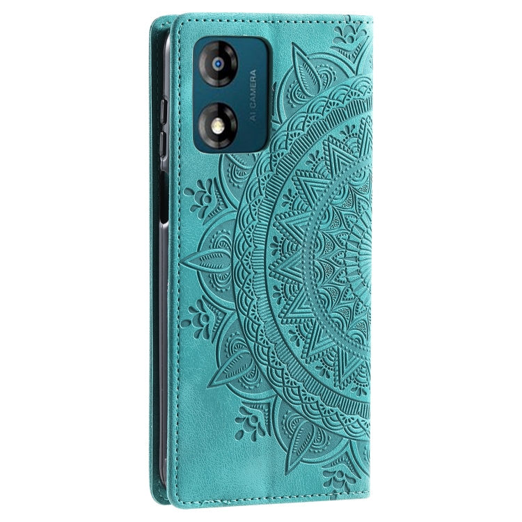 Funda de Cuero Magnética en Relieve para Motorola Moto E13 Totem (Verde)