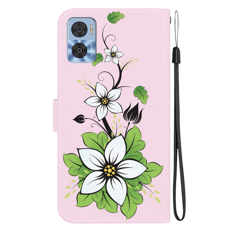 Funda para Motorola Moto E22 / E22I de Cuero con Dibujo Coloreado y Textura de Cristal (Lirio)