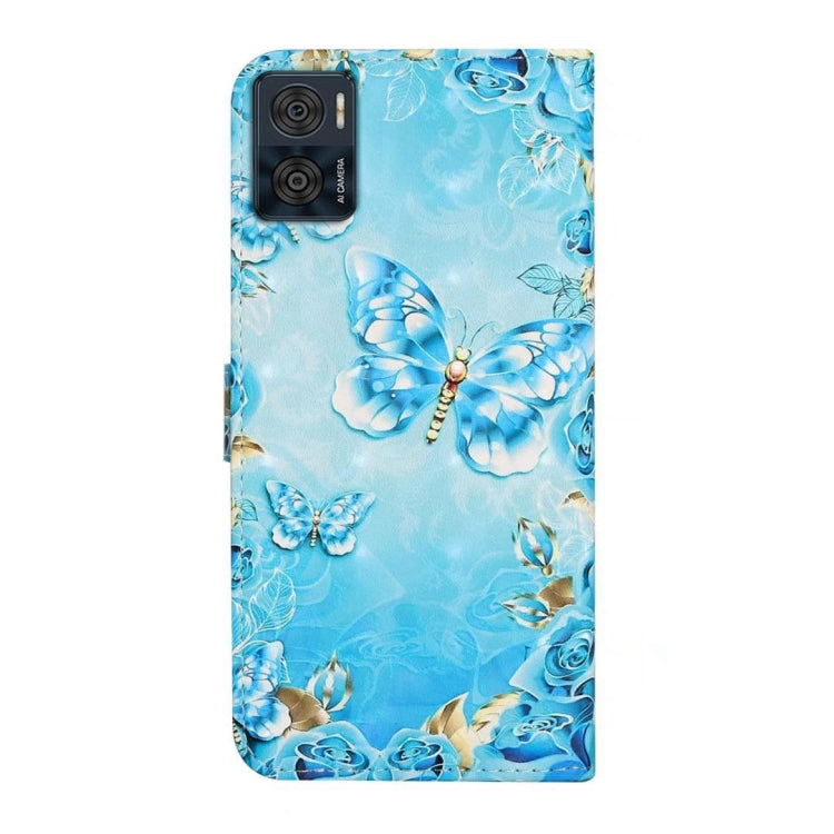 Funda de Cuero para Motorola Moto E22 con Dibujo 3D en Relieve al Óleo (Mariposas Azules)