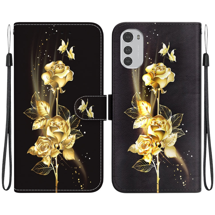 Funda de Cuero Motorola Moto E32 con Dibujo Coloreado y Textura de Cristal (Mariposa Dorada Rosa)