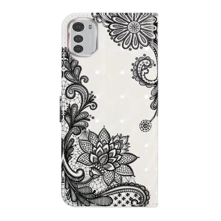 Funda de Cuero para Motorola Moto E32 con Dibujo 3D en Relieve al Óleo (Flor de Encaje)