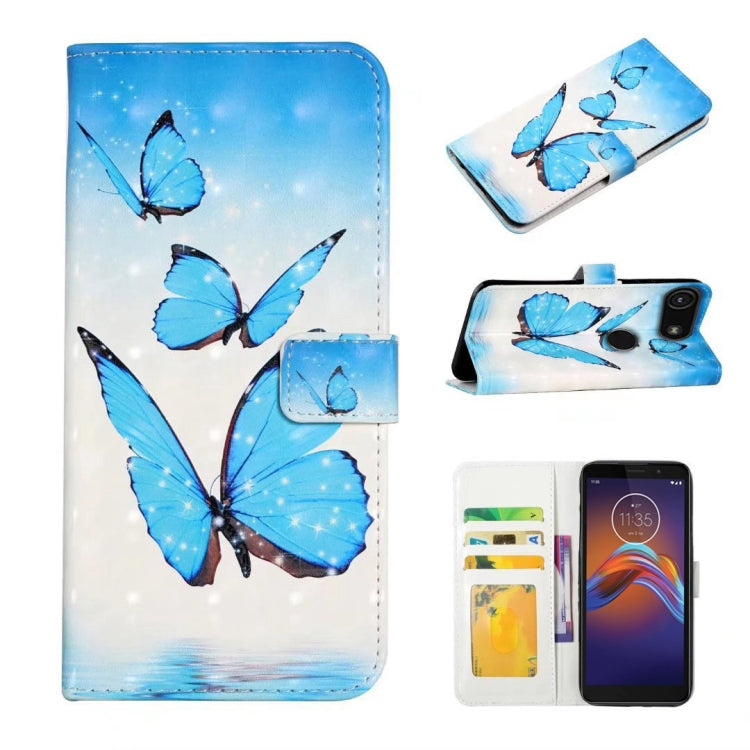 Funda de Cuero para Motorola Moto E6 Play con Dibujo 3D en Relieve al Óleo (3 Mariposas)