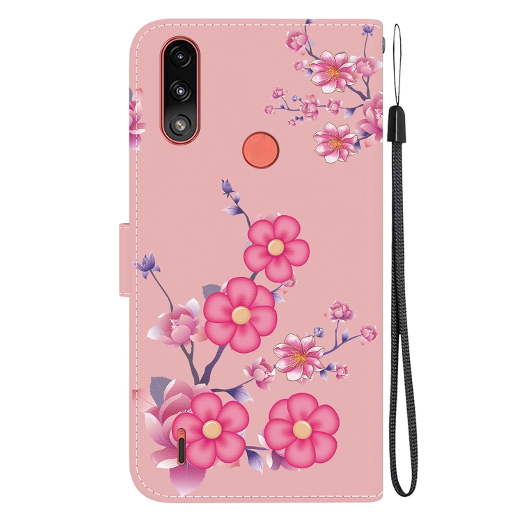Estuche para Motorola Moto E7 Power y E7I Power de Cuero con Dibujo y Textura de Cristal (Flores de Cerezo)
