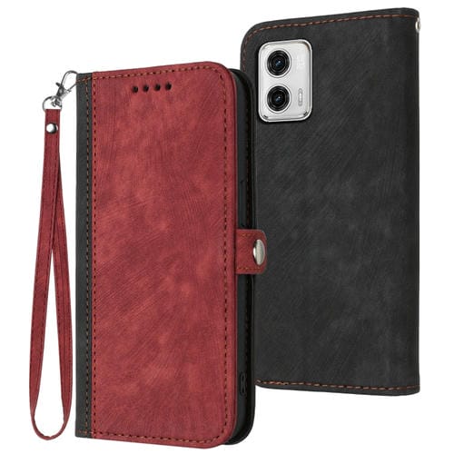 Funda de Cuero para Motorola Moto G 5G 2023 con Correa de Mano, Doble Pliegue y Hebilla Lateral (Rojo)