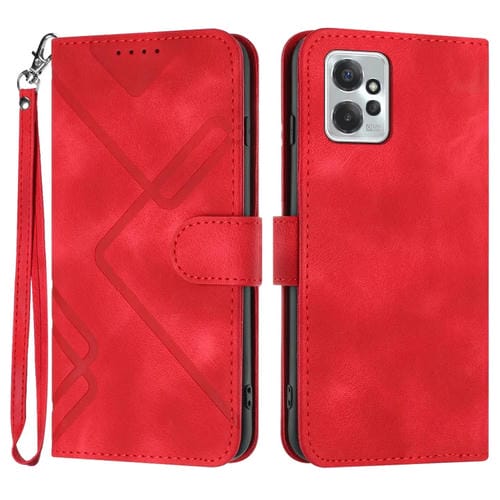 Funda de Cuero para Motorola Moto G Power 2023 con Patrón de Línea y Sensación de Piel (Rojo)