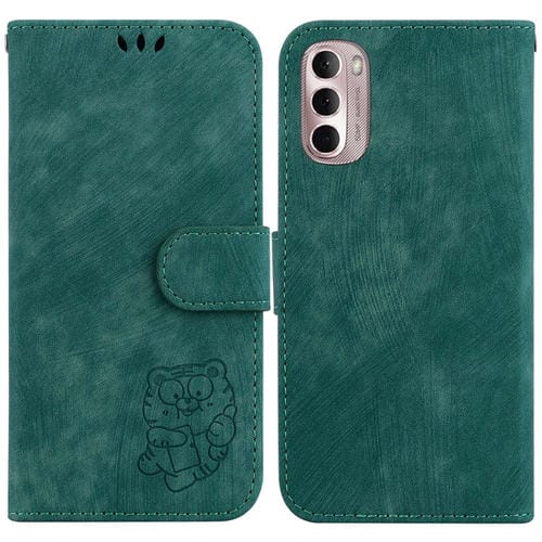 Funda para Motorola Moto G Stylus 4G 2022 de Cuero con Relieve Little Tiger (Verde)