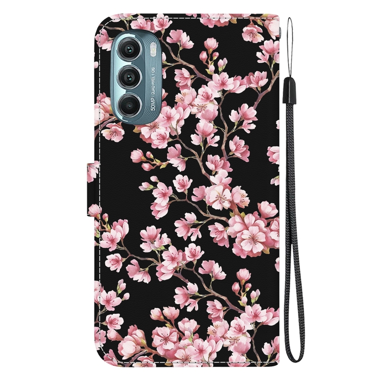Estuche de Cuero para Motorola Moto G Stylus 5G 2022 con Dibujo Coloreado y Textura de Cristal (Plum Bossom)