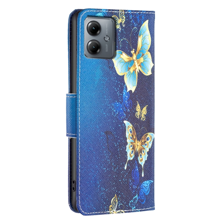 Funda de Cuero para Motorola Moto G14 4G con Patrón de Dibujo Coloreado (Mariposa Dorada)