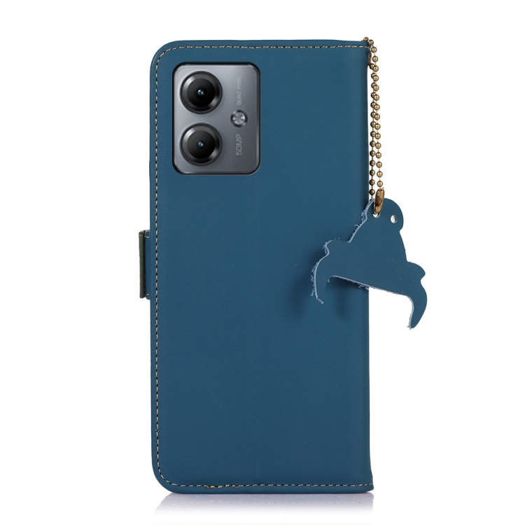 Funda de Cuero Genuino Magnética Rfid para Motorola Moto G14 4G (Azul)