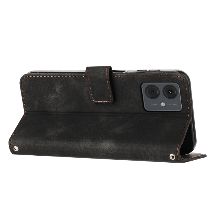 Funda de Cuero para Motorola Moto G14 Dream Triangle con Cordón (Negro)