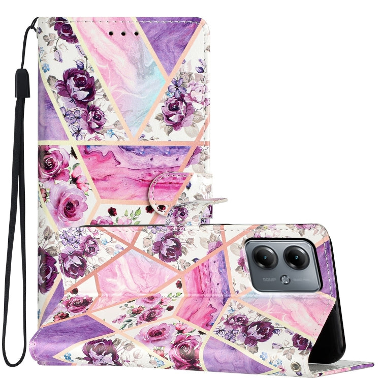 Funda de Cuero para Motorola Moto G14 con Dibujo Coloreado Mármol (Morado)