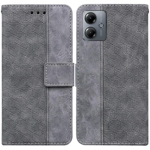 Funda de Cuero para Motorola Moto G14 con Relieve Geométrico (Gris)