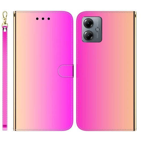 Funda de Cuero para Motorola Moto G14 con Superficie de Espejo Imitada (Color Degradado)