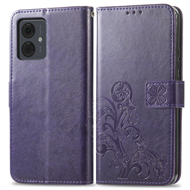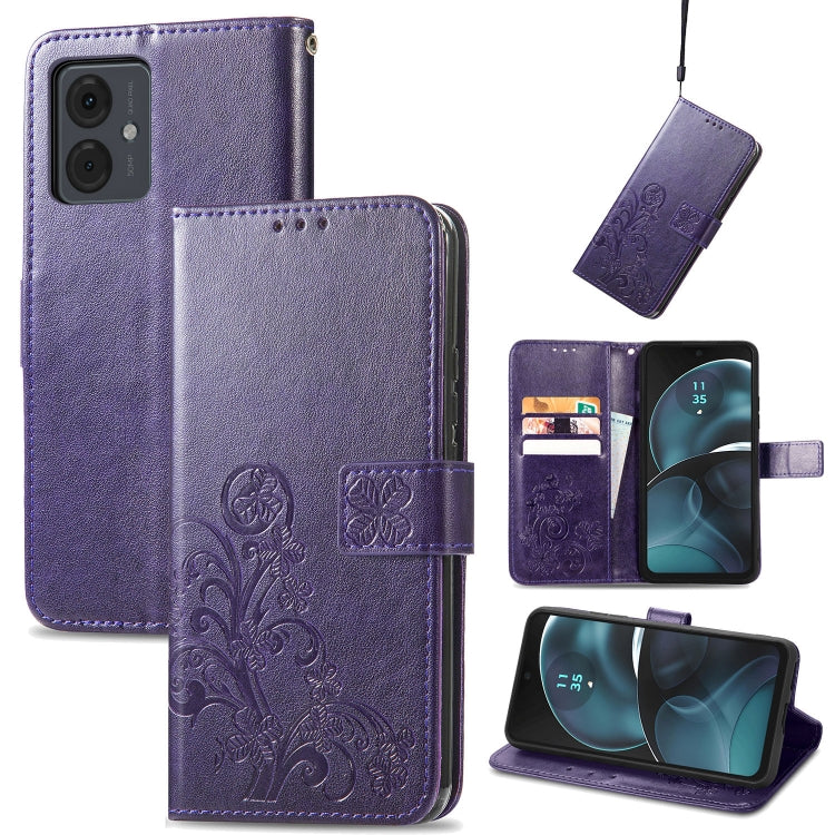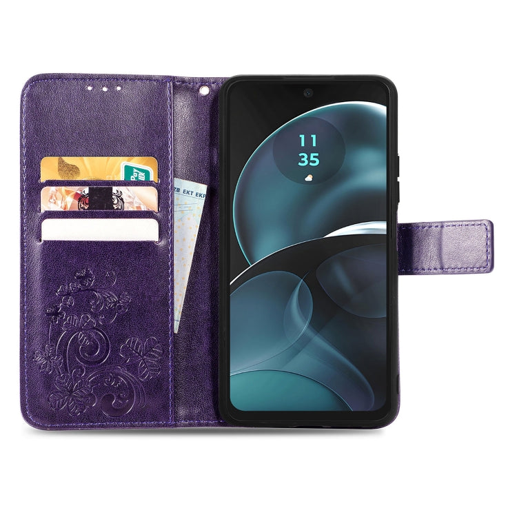 Funda de Cuero para Motorola Moto G14 con Cierre de Cuatro Hojas (Púrpura)