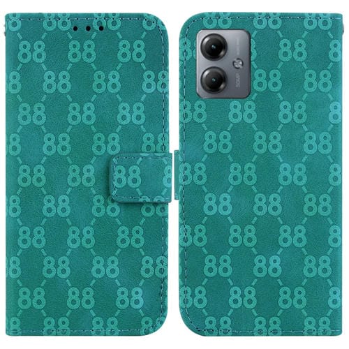 Funda para Motorola Moto G14 de Cuero con Relieve en Forma de 8 Doble (Verde)