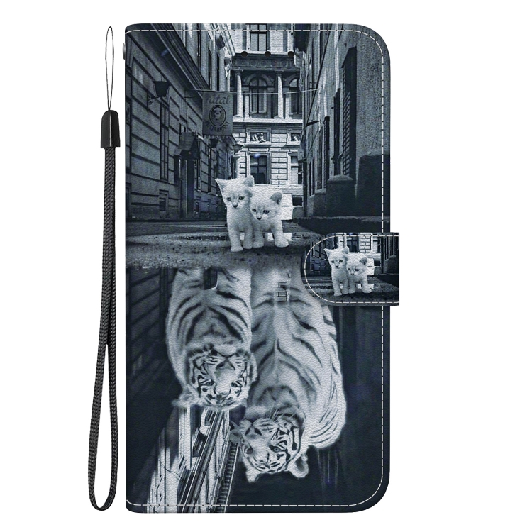 Funda de Cuero para Motorola Moto G200 5G con Dibujo Coloreado y Textura de Cristal (Reflejo de Tigre Gato)
