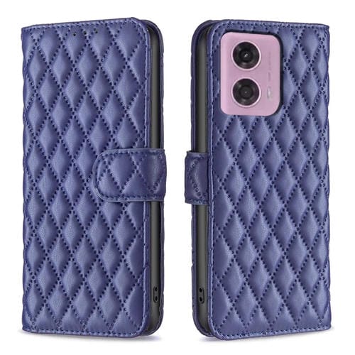 Funda de Cuero con Tapa para Motorola Moto G24 Diamond Lattice (Azul)