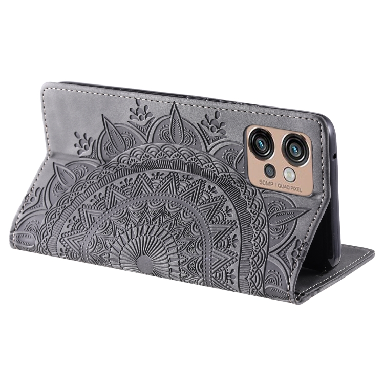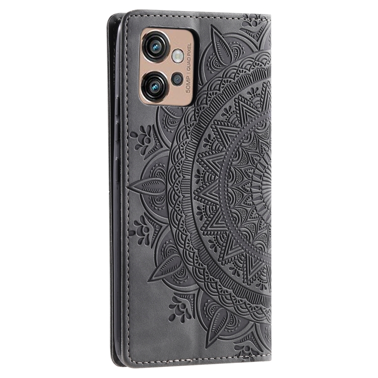 Funda de Cuero Magnética Totem para Motorola Moto G32 en Relieve (Gris)